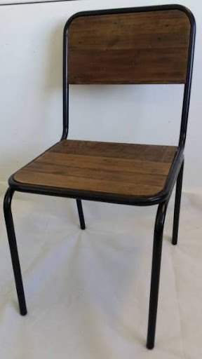 Industrial Retro Vintage Metal Wooden School Chair Dining Blk